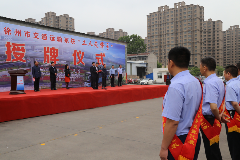 5月8日上午10點,徐州市總工會在郭莊路停保場隆重舉行徐州市交通運輸系統(tǒng)“工人先鋒號”授牌儀式。徐州市人大副主任、市總工會主席束志明,徐州市副市長趙立群,市文明辦主任沈麗,市交通運輸局局長蔡前鋒,市總工會副主席劉洪印、副主席潘華,市交通運輸局工會主席王培河以及公司董事長、總經(jīng)理杜紅軍等領(lǐng)導(dǎo)出席了授牌儀式。來自公交公司、汽車客運總站等交通運輸行業(yè)的300余名員工參加了授牌大會。