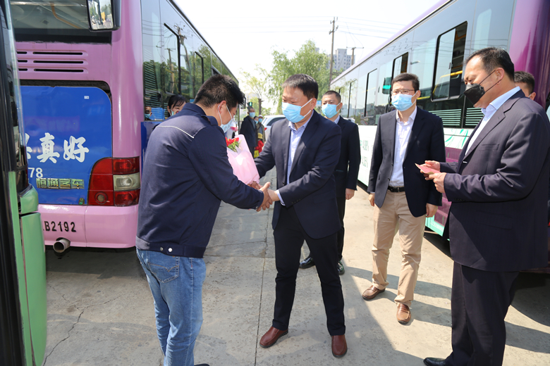 當天上午,公交集團黨委書記、董事長杜紅軍,總經(jīng)理馮陸陸,常務(wù)副總經(jīng)理蔣成彪,副總經(jīng)理丁玉華帶隊分為四組,到14路、64路、10路等終點站、車場等處開展勞模標兵走訪慰問活動,為韓杰、劉艷軍、楊鵬鵬、曹瑞國、劉委等11名市勞模,省、市五一勞動獎?wù)潞推髽I(yè)勞模送去了鮮花和節(jié)日慰問金。
