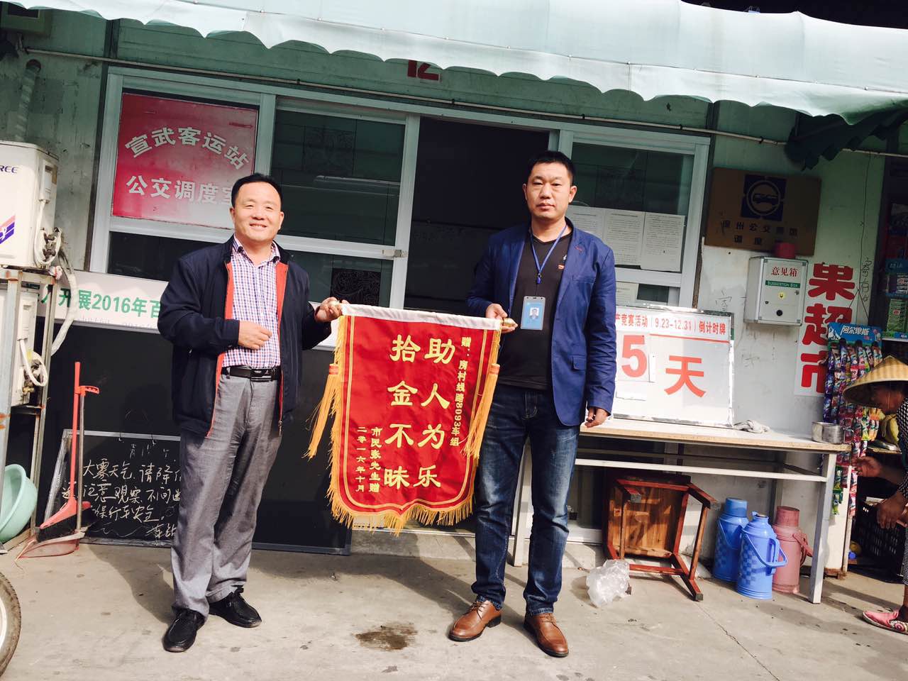 83路附線乘務員侯閃閃拾到1800元現(xiàn)金歸還——10月6日上午,83附線路乘務員侯閃閃撿到一個裝有棉衣的手提袋,經(jīng)檢查棉衣口袋中有現(xiàn)金1800元。侯閃閃將物品交到調(diào)度室保管,經(jīng)過車站多方聯(lián)系,失主張先生于次日上午來到公交宣武車站調(diào)度室將失物領回,并送來錦旗表示感謝。