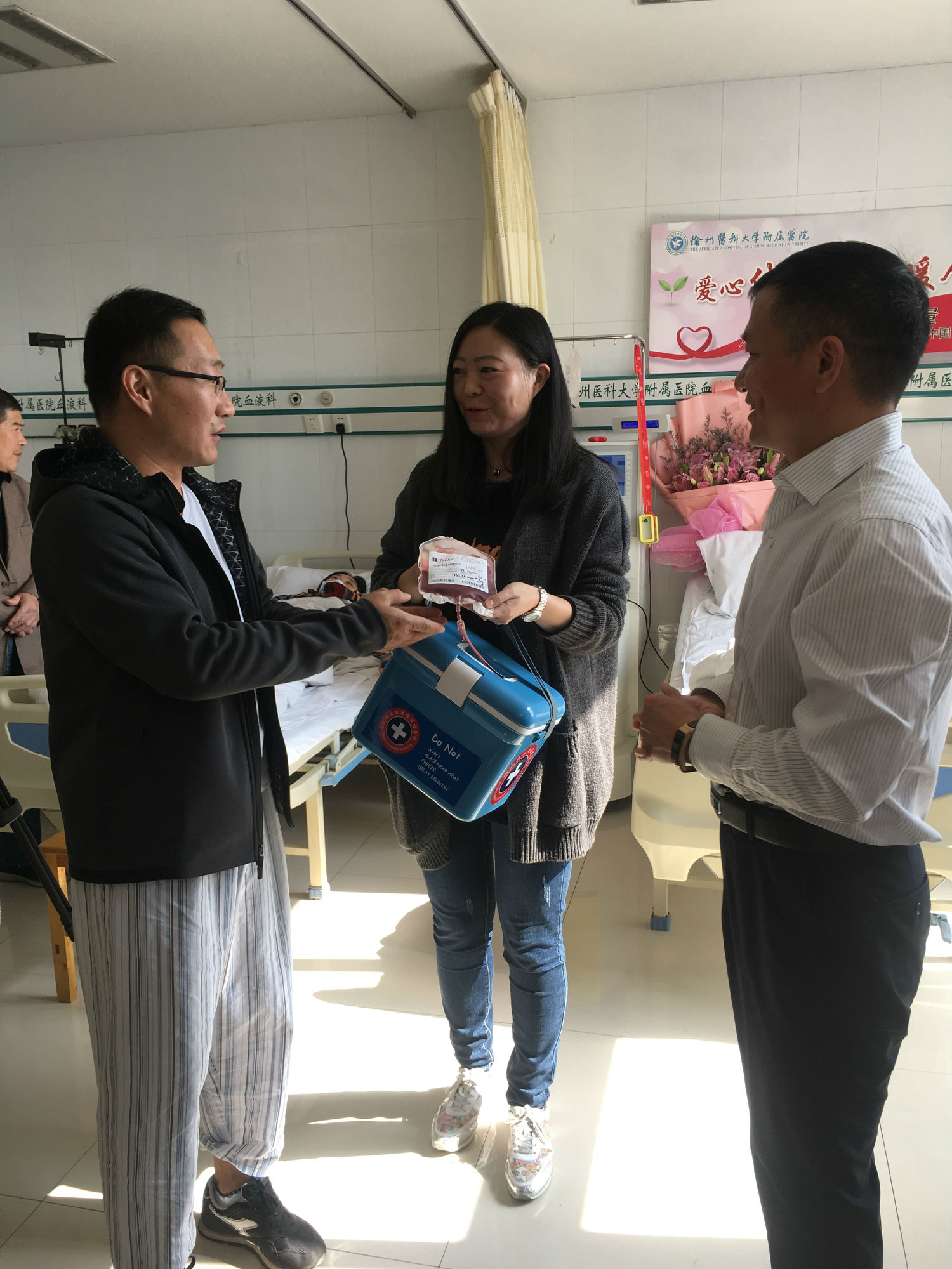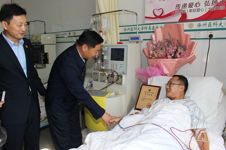 自7月底接到通知的這段時間,鄭剛一直積極配合著,希望保持最佳的身體狀態(tài)進行捐獻。他努力克制自己,戒煙戒酒,鍛煉身體,增加高營養(yǎng)的飲食調理。喝不慣牛奶的他甚至強迫著自己一天喝兩包奶。國慶節(jié)幾天,他突然感冒發(fā)低熱,竟忍著沒敢吃藥……鄭剛所在的單位也給予了大力的支持和配合,10月25日入院,徐州公交為他舉辦了隆重的歡送儀式,董事長、總經(jīng)理杜紅軍等領導給他送來了慰問金,安排好他的休息時間。