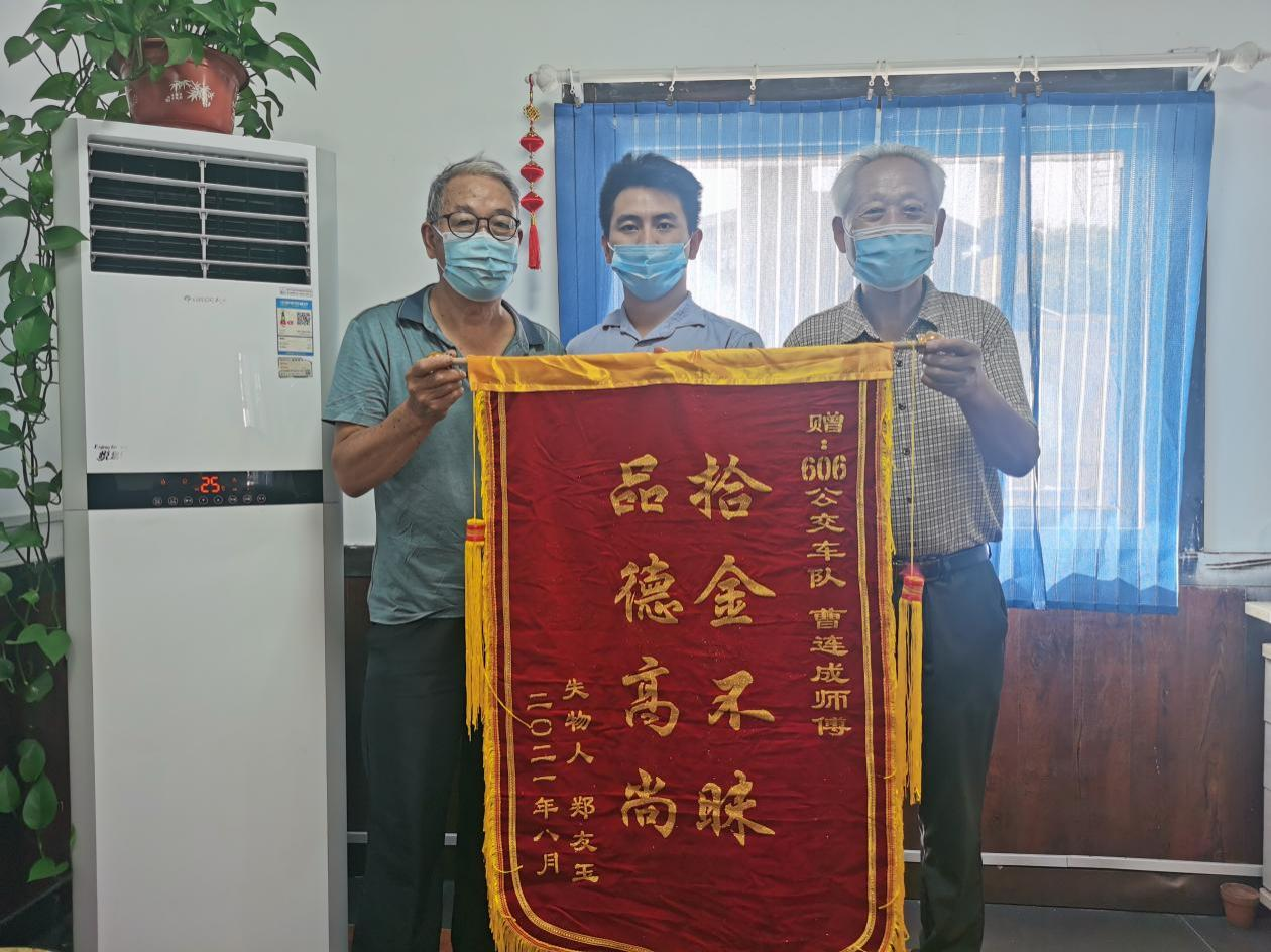 8月30日中午11點左右,市民鄭先生與同伴在大福源乘坐606路公交車趕往九七醫(yī)院就醫(yī),到醫(yī)院后發(fā)現(xiàn)錢包丟,鄭先生萬分著急,在同伴的提醒下,他來到606路韓山調(diào)度室尋找失物。果不其然,鄭先生的錢包被駕駛員曹連成師傅送到調(diào)度室妥善保管。鄭先生萬分感謝說道:“錢包里除了現(xiàn)金和各類銀行卡外,還有醫(yī)保卡、社??ǎa辦十分麻煩,咱們司機師傅真是幫了大忙。”9月1日,鄭先生特意送來錦旗表達謝意。