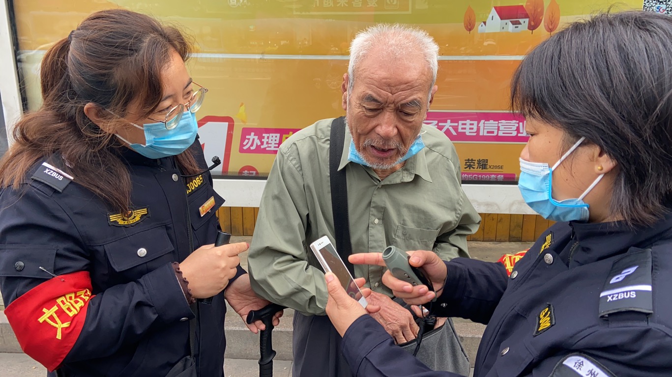 原來,10月20日上午,新一佳公交站臺督導員孫玲麗、成敏二人正在忙碌地疏導著上班高峰期的乘客時,發(fā)現(xiàn)一位老人在站臺上徘徊許久,遲遲沒有上車。孫玲麗、成敏見狀趕忙上前詢問老人情況,經(jīng)過一番溝通得知老人獨自外出,甚至無法清晰表達自己的姓名和家庭住址,幸虧在老人隨身攜帶的背包里找到了一個電話號碼,但由于電話一直處于無人接聽狀態(tài),督導員便立即撥打了110尋求幫助,最終將老人安全送上警車后懸著的心才放下來。