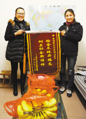 10月17日,乘客丁女士將“拾金不昧品德高、樹立社會新榜樣”的錦旗送到8路駕駛員劉元元和車隊領導手中。