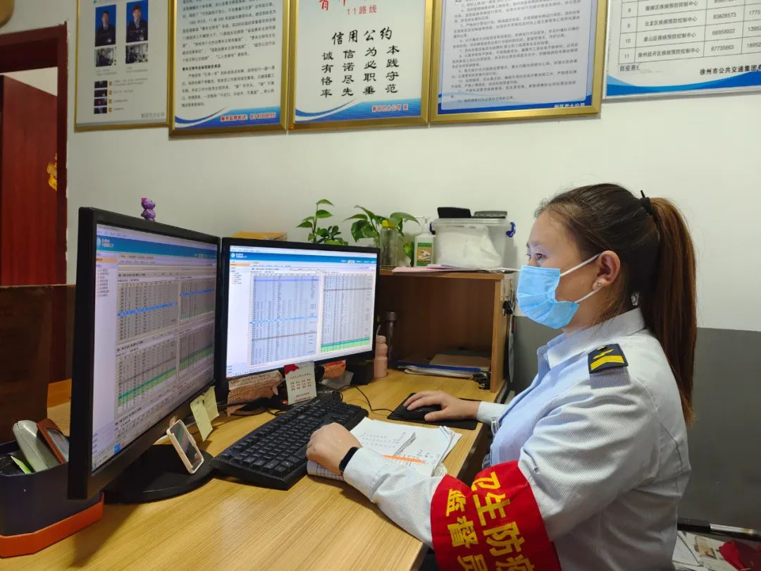 天還未亮,19路調(diào)度室里燈火通明,調(diào)度員黃靜已經(jīng)打開電腦開始了一天的工作,駕駛員陸續(xù)到達(dá),車隊運(yùn)管員鄒晶一邊叮囑著駕駛員安全注意事項,一邊對其進(jìn)行酒精測試,一切井井有條,忙而不亂。首班車駕駛員紀(jì)彤仔細(xì)檢查車況、消毒、通風(fēng)等情況,車上、車下絲毫不敢疏忽,做好出車前的準(zhǔn)備。