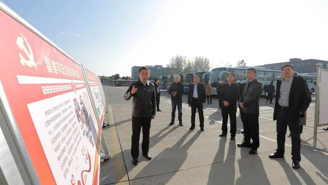 市委第一巡察組等一行首先到公交新城公司郭莊路停保場(chǎng)調(diào)研指導(dǎo),現(xiàn)場(chǎng)查看了充電樁、維保車間、黨員活動(dòng)室、勞模工作室,了解車輛維保、安全工作,以及深化五星級(jí)黨支部創(chuàng)建等情況。公交集團(tuán)黨委書記、董事長(zhǎng)曹震從車輛更新、線路調(diào)整等方面,就優(yōu)化線路運(yùn)營(yíng)、服務(wù)市民出行等情況進(jìn)行了匯報(bào)。