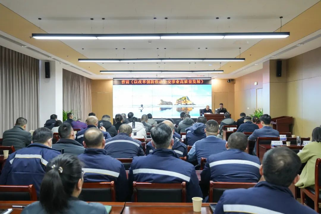 曹震緊密結(jié)合公交企業(yè)實際情況,圍繞公交市場化轉(zhuǎn)型主題,縱觀公交60余年發(fā)展脈絡,和大家分享、交流了對公交企業(yè)市場化轉(zhuǎn)型發(fā)展的認識,以及黨建引領,推動公交轉(zhuǎn)型發(fā)展取得“六個轉(zhuǎn)變”的經(jīng)驗做法。同時,結(jié)合公交發(fā)展當前面臨的形勢和問題,從抓黨建宣傳,發(fā)揮國企優(yōu)勢;抓思想作風,匯聚正面能量;抓進度任務,完成考核指標;抓精細管理,提升服務質(zhì)量;抓改革創(chuàng)新,助力發(fā)展驅(qū)動;抓政策研究,爭取政府扶持等方面談了破局發(fā)展的思考和出路。