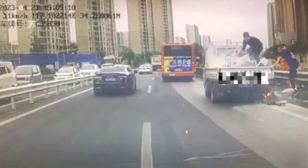 4月21日中午,608路4名駕駛員石守軍、孫晉旭、郝科軍、郝允明駕駛著他們各自的車輛前往火花加氣站進行加注燃料,就在返回的途中,忽然看到前方路邊白煙滾滾,當距離再靠近一點時才發(fā)現(xiàn)竟然是一輛小型貨車車廂著火產(chǎn)生的陣陣煙霧,且已經(jīng)有幾個箱子開始接連燃燒,小貨車駕駛員手里只有一瓶礦泉水,面對火勢即將控制不住,這僅有的一瓶水無疑是杯水車薪,無奈之下,貨車司機只能慢慢地將著火的紙箱搬下車廂。