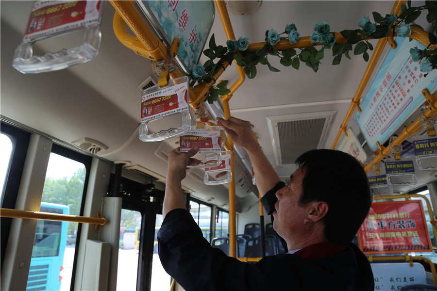 4月19日下午3點(diǎn)多,“嚓、嚓、嚓,嚓、嚓、嚓!”筆者在韓山停車場偶然間發(fā)現(xiàn)一輛49路車上一個(gè)忙碌的身影,正在拿著黃色牙刷在刷扶手。走上車,哦,原來是市勞模、49路四星級(jí)駕駛員王博正在利用休停時(shí)間用牙膏刷洗拉手,別說,這個(gè)小竅門還真不錯(cuò)!經(jīng)過王師傅的辛勤刷洗,原本發(fā)黑的黃色拉手布煥然一新!配詩一首: